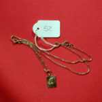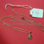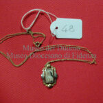 Sottilissima catenella formata da minuti anellini alle cui estremità vi sono un anellino più grande e l’aggancio apribile a molla per la chiusura. Il pendaglio è costituito da una cornice…